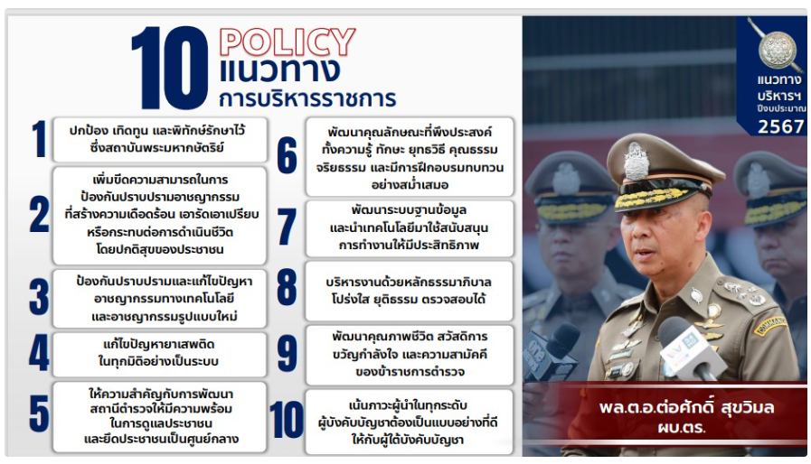 การปฏิบัติราชการตาม10 นโยบายหลัก ของ พล.ต.อ.ต่อศักดิ์ สุขวิมล ผบ.ตร.