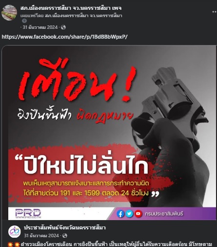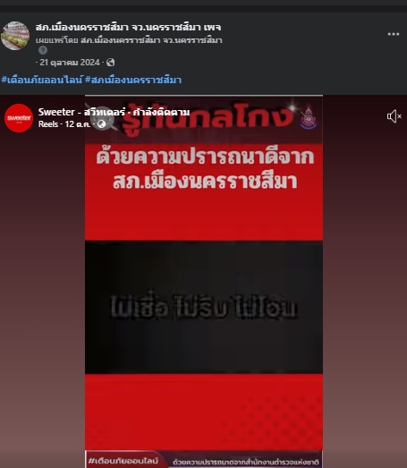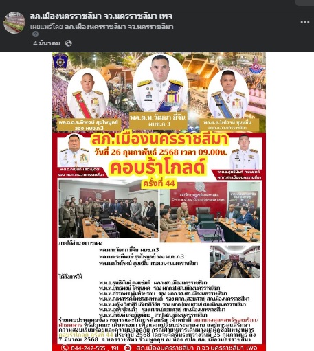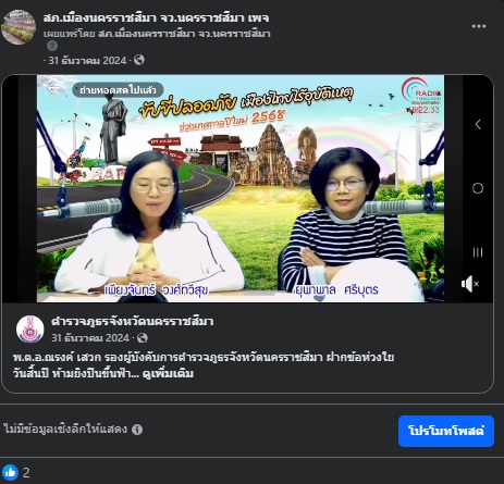 การประชาสัมพันธ์ทาง FaceBook สภ.เมืองนครราชสีมา